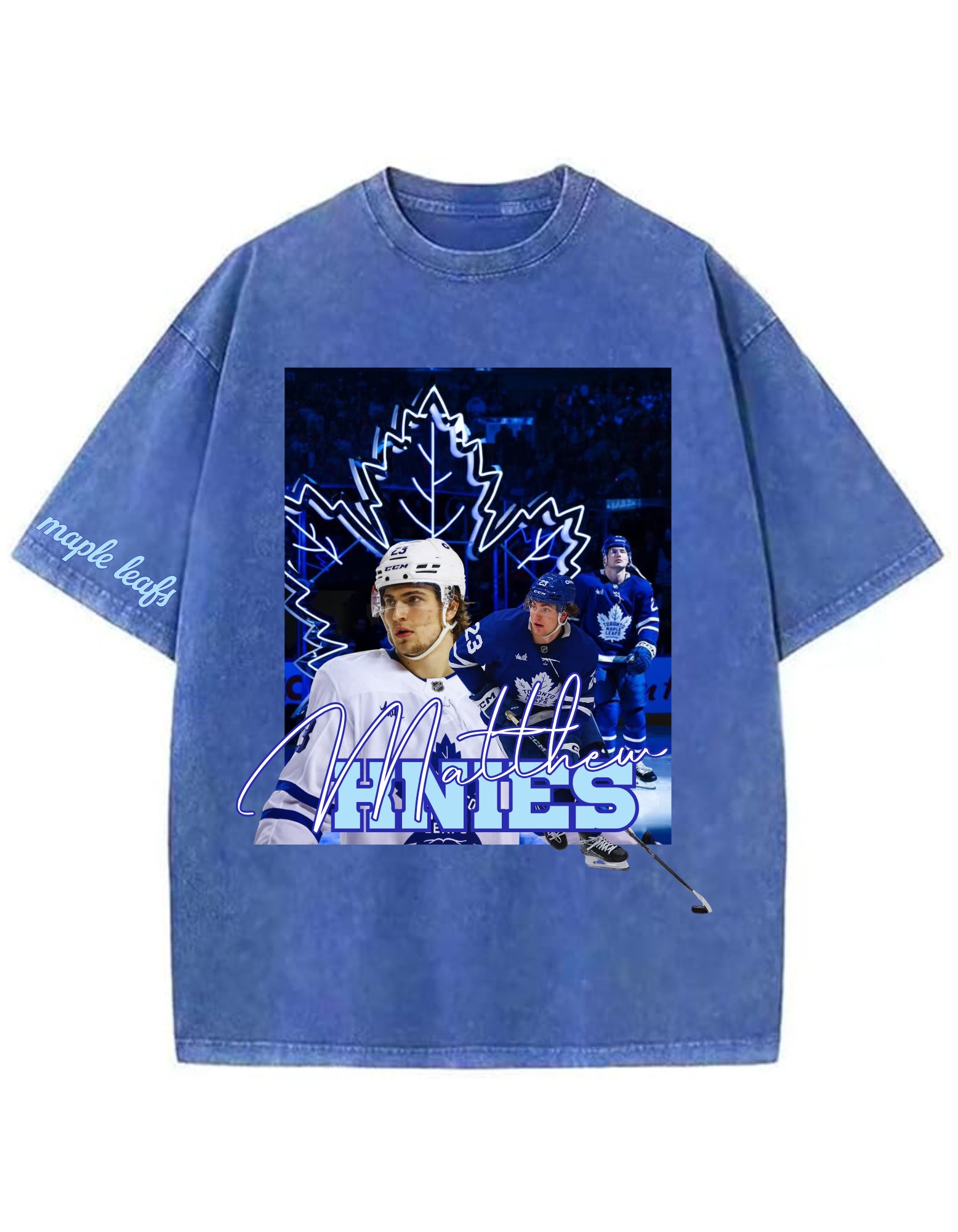 This image features Matthew Knies, rising star in the league on the Toronto Maple Leafs.